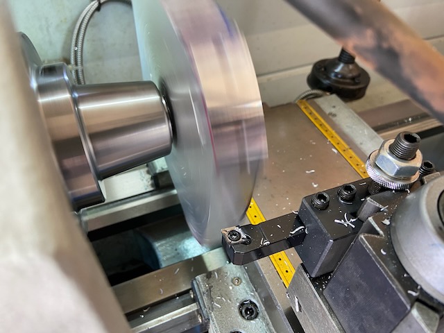 A 3/4″ shank was machined and threaded on the lathe.